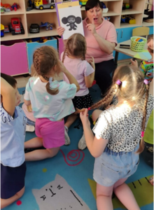 - ребята старшего возраста приняли участие в игровом тренинге "По дороге детской дружбы", где все дети группы превратили злую Кляксу в доброго друга. Игровой тренинг направлен на формирование у дошкольников доброжелательного отношения друг к другу, на воспитание дружественных, толерантных отношений между детьми.