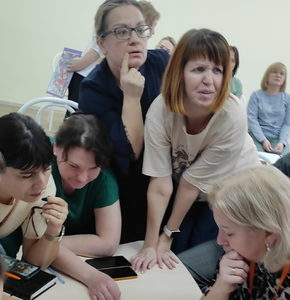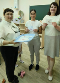 С педагогами был проведён тренинг с использованием метода арт–терапии "Поляна дружбы", на формирование чувства причастности к коллективу, групповой сплочённости, доброжелательных взаимоотношений.